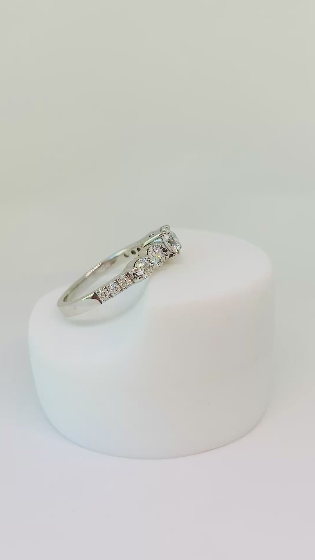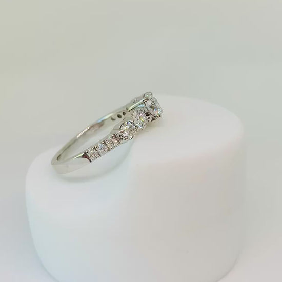 Anillo de platino con un Diamante central corte brillante GIA de 0,40 ct , engastado en 4 grifas, acompañado de 2 brillantes de 0,12 ct cada uno, más 2 brillantes de 0,08 ct cada uno y 6 brillantes de 0.015 ct cada uno en la argolla, engastado en grifas.